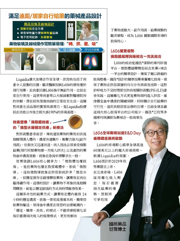 About Us Company Profile Milestones Board of Directors Management Team Advisors R & D Pipeline Pulmonary Vascular L606 L608 Peripheral Vascular L608 Technology Sustained Release Inhalation Formulation Drug-Device Combination Scale-up Production Pressroom Press Release Campaigns Videos Publications Investors Corporate Governance Corporate Structure Board of Directors Others Corporate Governance Officer Corporate Governance Implementation ESG (Chinese Only) Information Security Management Intellectual Property Management Integrity management Sustainable Development Stakeholders Financial Information Financial Results Revenues Prospectuses Shareholder Information Annual General Meeting Major Shareholders Stock Affair Agent News & Events Press Releases Events and Presentations Material Information Careers Employee Welfare Environamental Friendliness Job Opening Home 中 EN